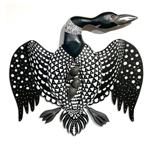 “My carved and painted birds reflect a fascination with objects which convey an intense knowledge and awareness of the maker’s environment,” he says. “Combining function, sophisticated woodworking and designs with traditional knowledge, these birds are imbued with beauty, mysticism and the pragmatic need to attract sources of food. I hope my work honors those traditions, expands the concept and encourages a greater appreciation of traditional skills, the fragility of all environments and the critical need to preserve unspoiled locales and living things.”