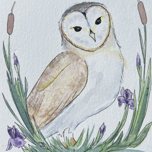 Each month has a different theme and inspiration-painting. For March, we’ll use ink and watercolor to create a portrait of a barn owl.